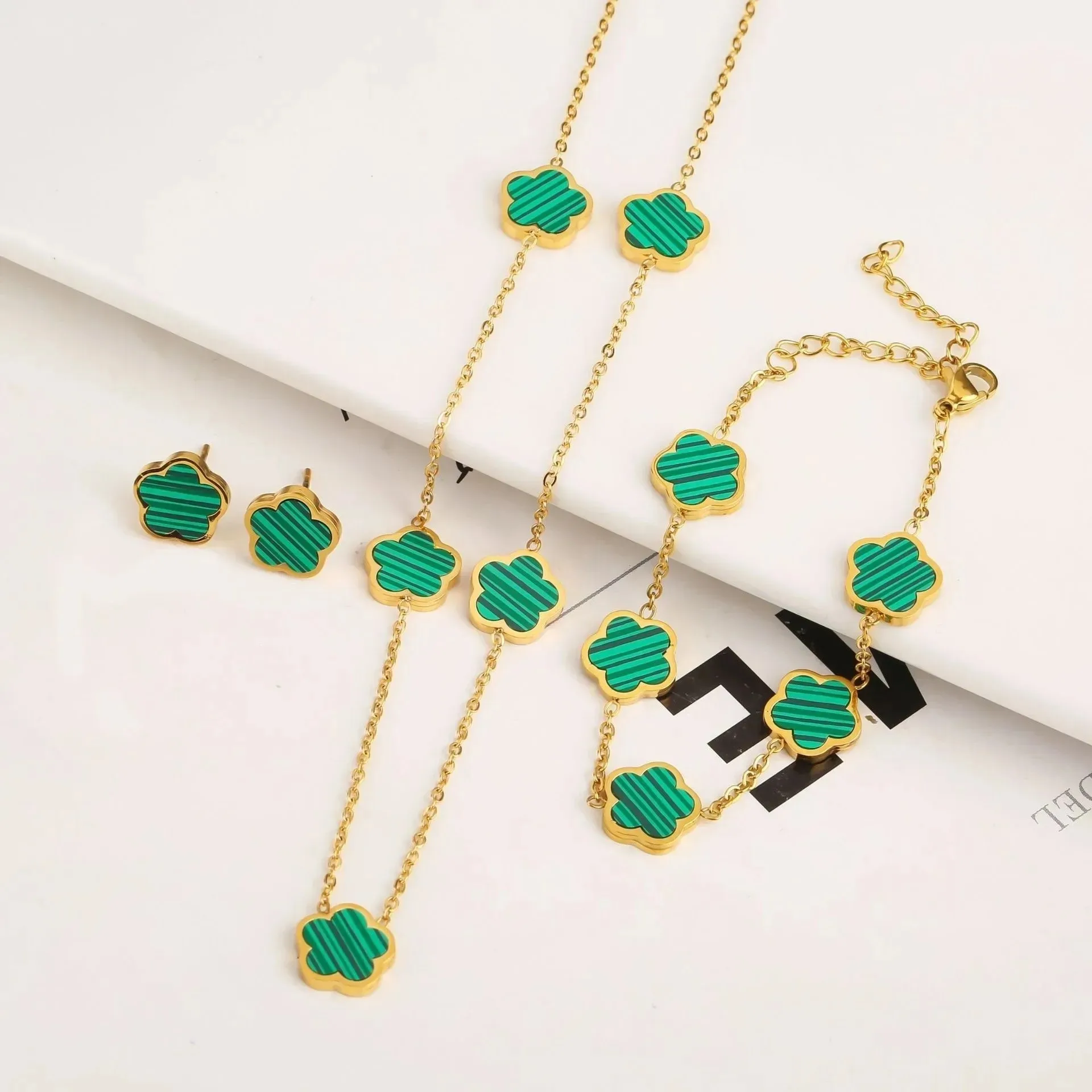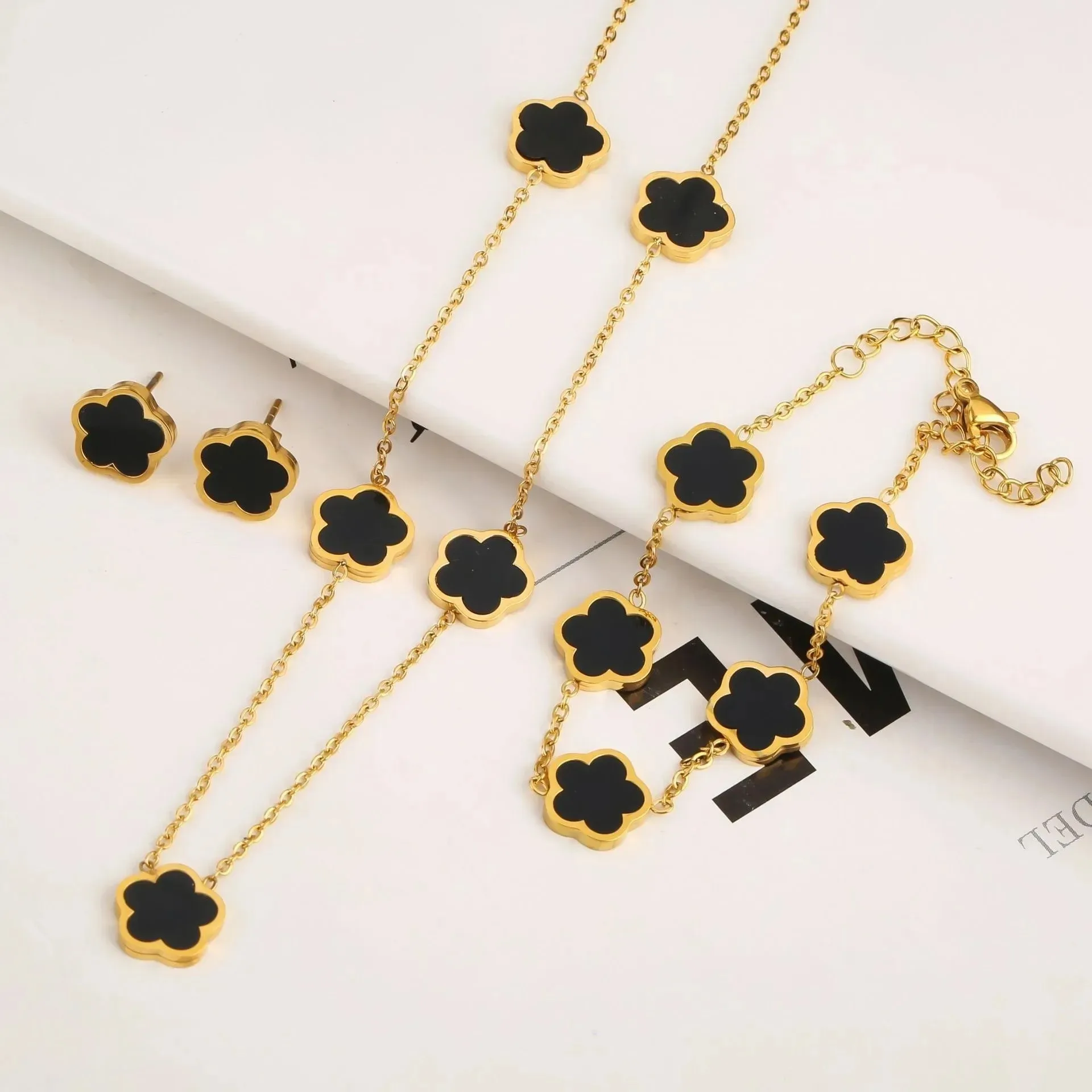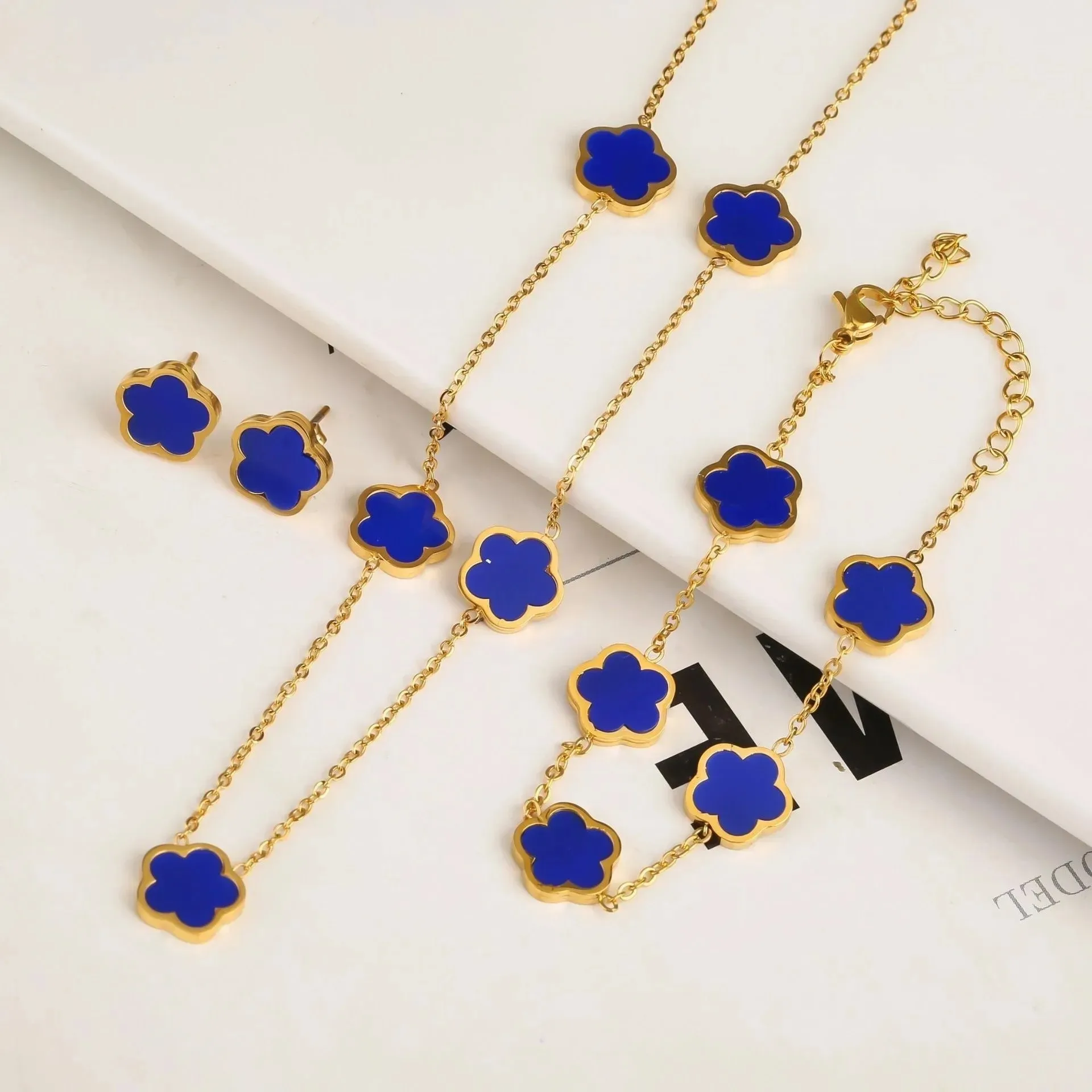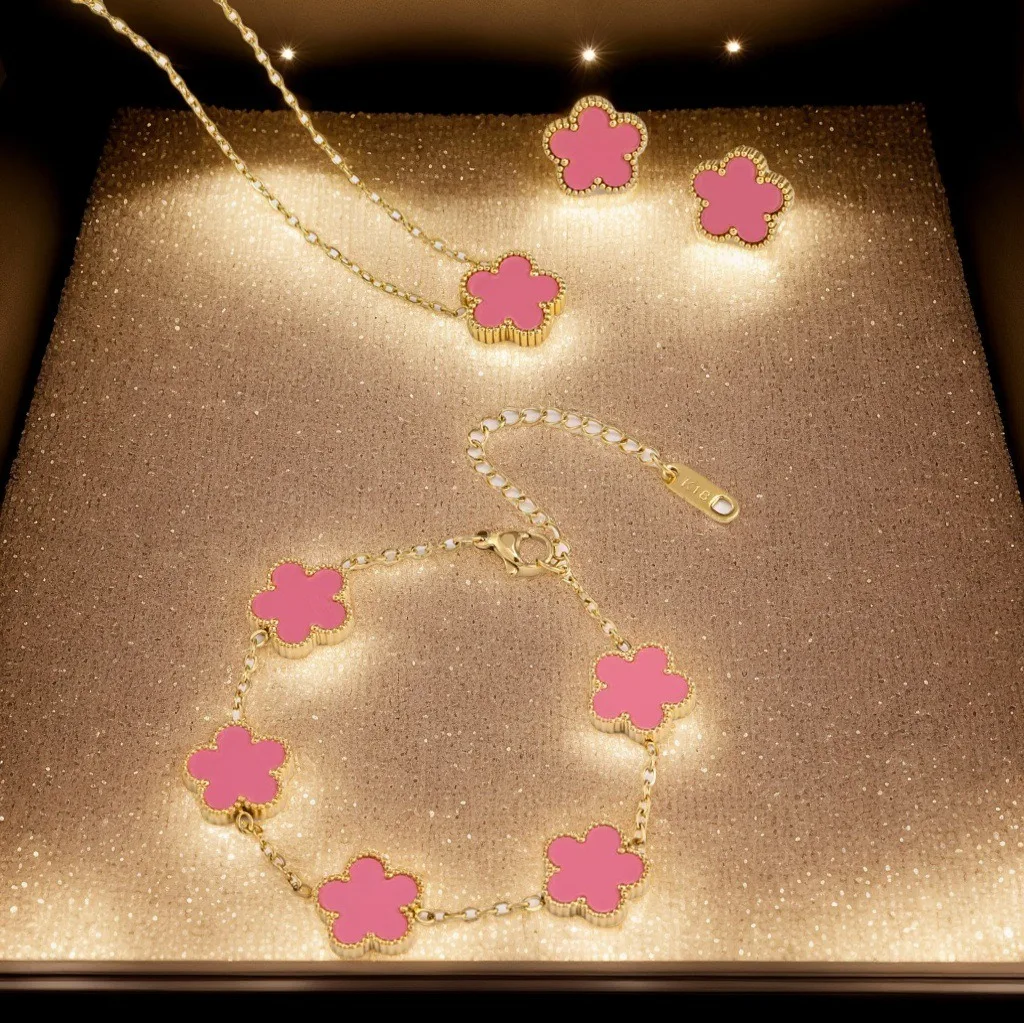 5pcs Lucky Five-petal Flower Women’s Jewelry Set, Fashion Flower Bracelet + Necklace + Earrings + Bracelet + Ring, Birthday, Ann