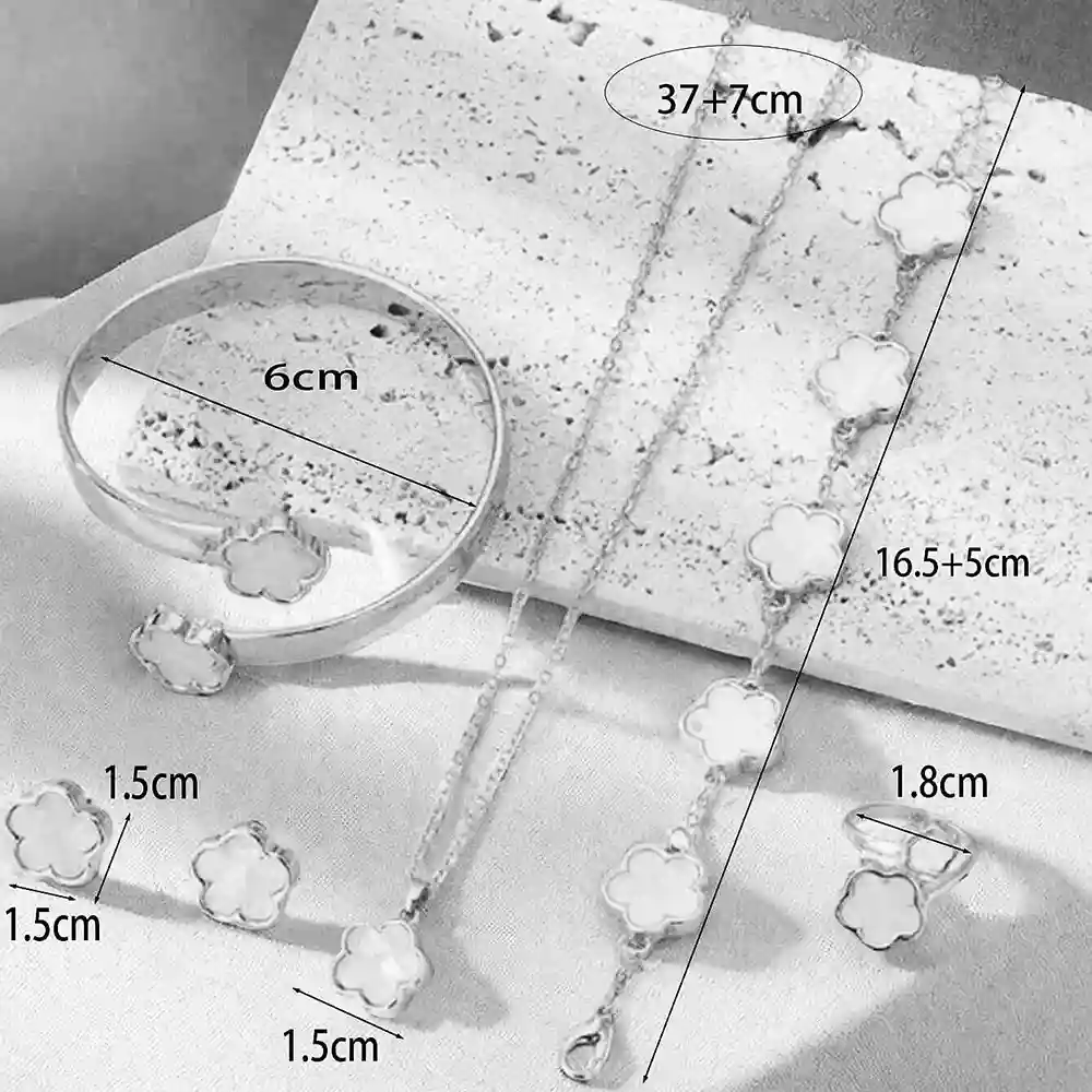 5pcs Lucky Five-petal Flower Women’s Jewelry Set, Fashion Flower Bracelet + Necklace + Earrings + Bracelet + Ring, Birthday, Ann