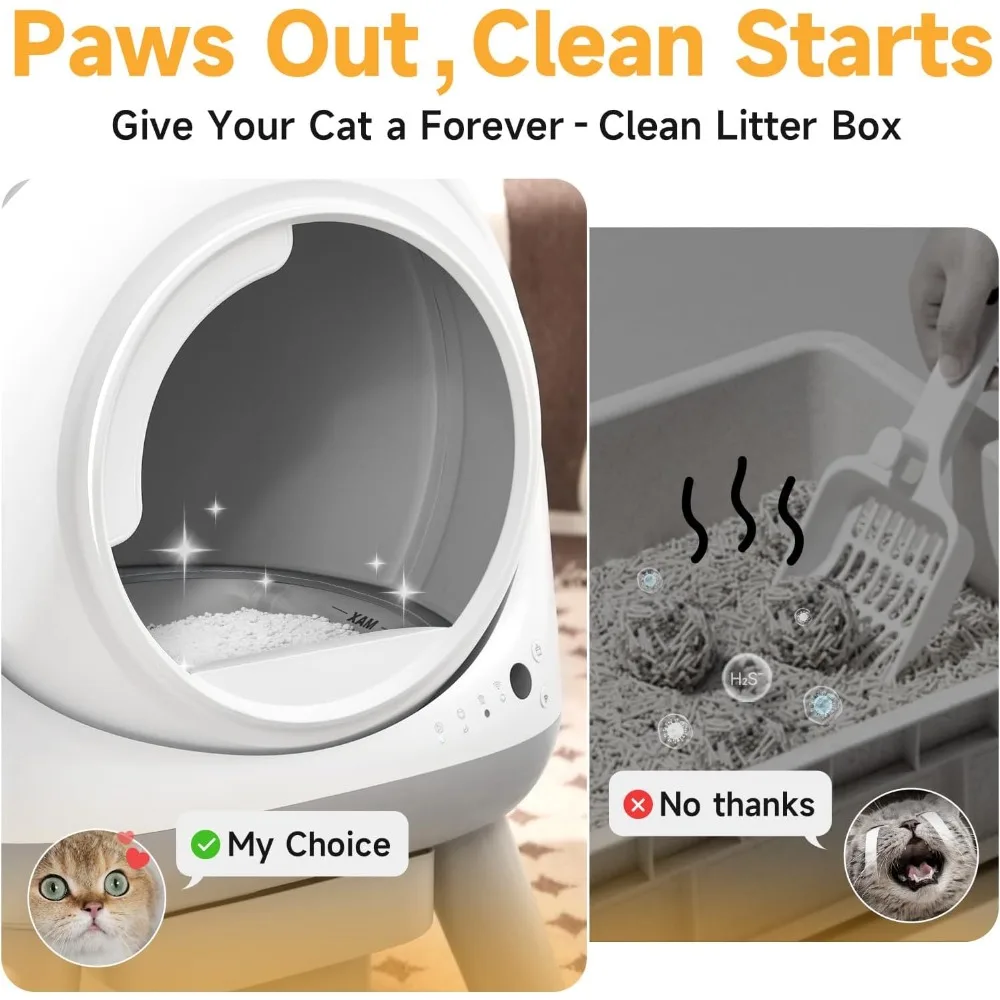 Walk in and smell nothing but fresh air. Your cat jumps in happily while the box silently cleans itself. App pings: “Milo just used it — weight stable at 11.2 lbs.” You smile knowing you’ll never scoop again.