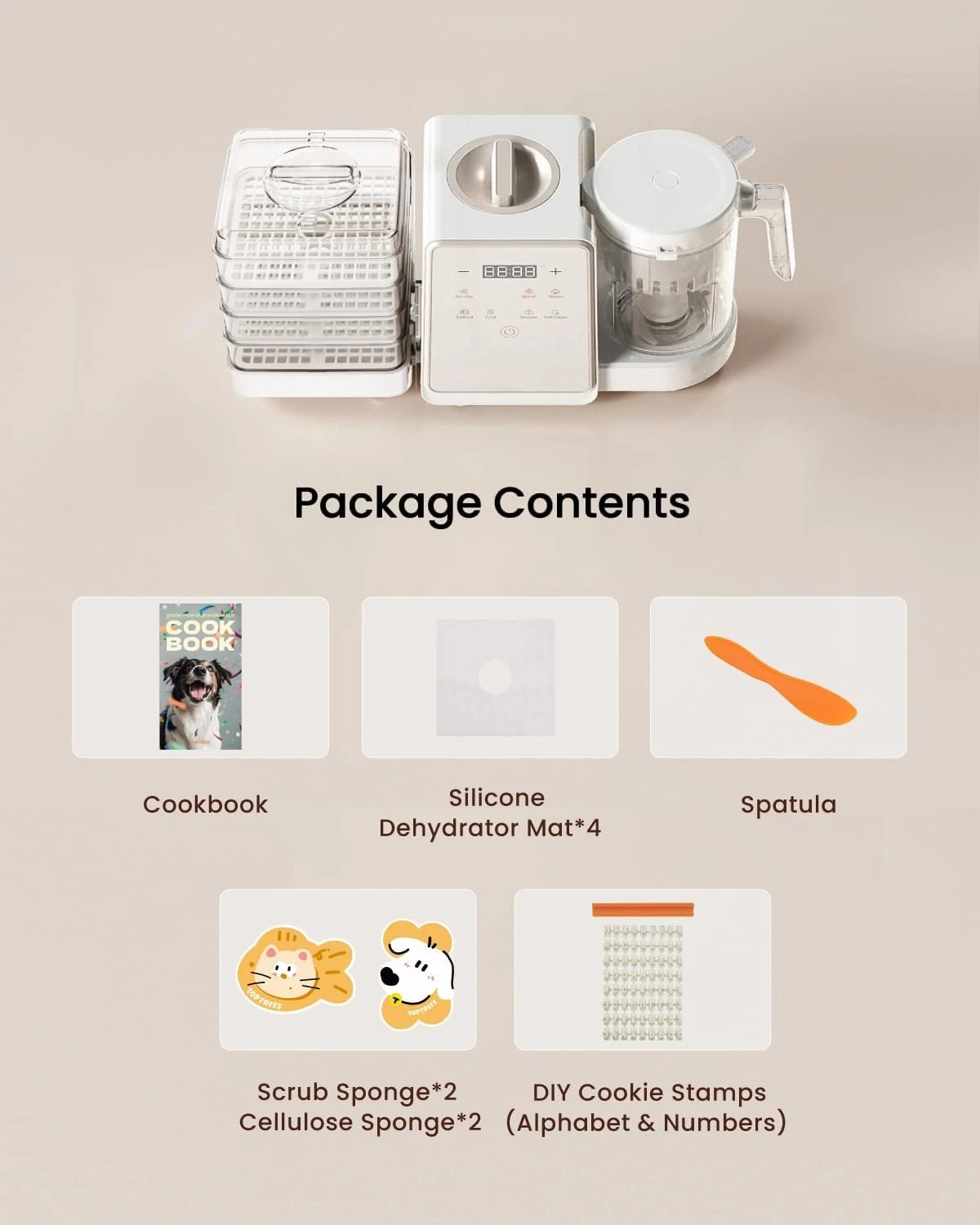 • Creative Recipe Book: This pet recipe book comes with the pet cooking machine and features over 100 creative pet treats. Detailed, step-by-step instructions help pet parents prepare healthy meals with ease and confidence, reducing the risk of mistakes. Simply choose a recipe based on your needs, follow the easy steps, and provide your pet with nutritious food. You can also create your own DIY recipe!