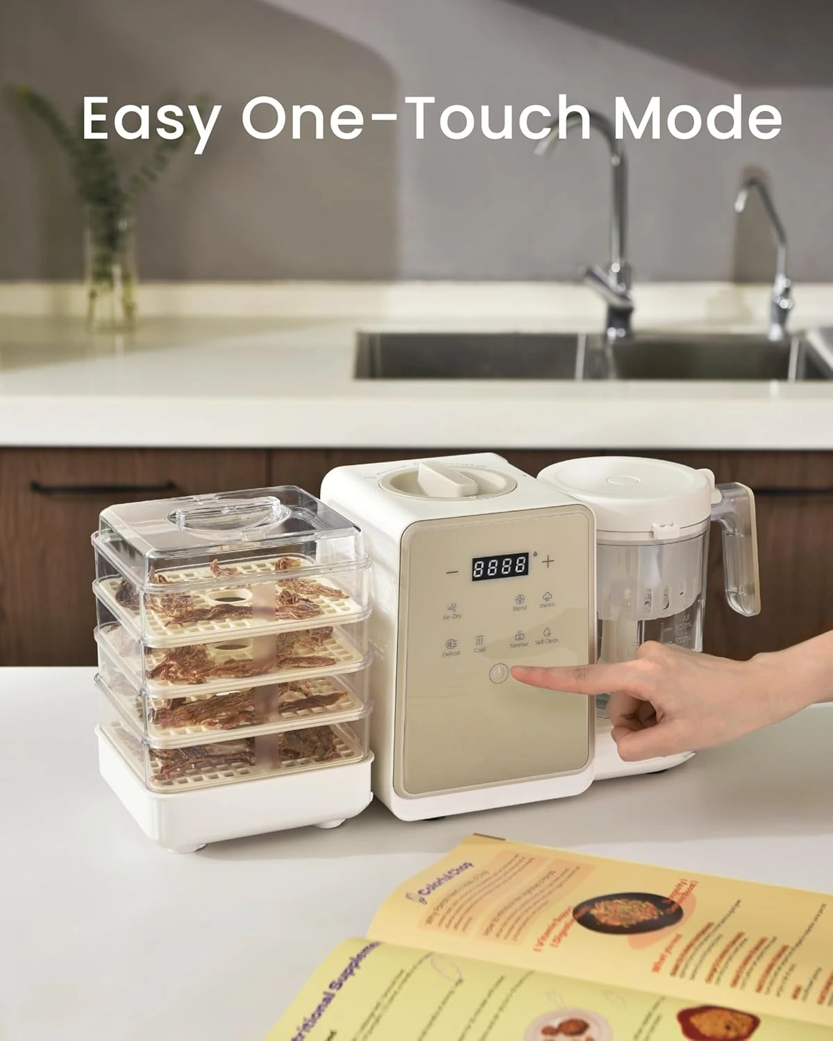Most recipes finish in 30-90 minutes hands-free. Press one button for blending, switch to air-dry or steam. Zero watching the pot.