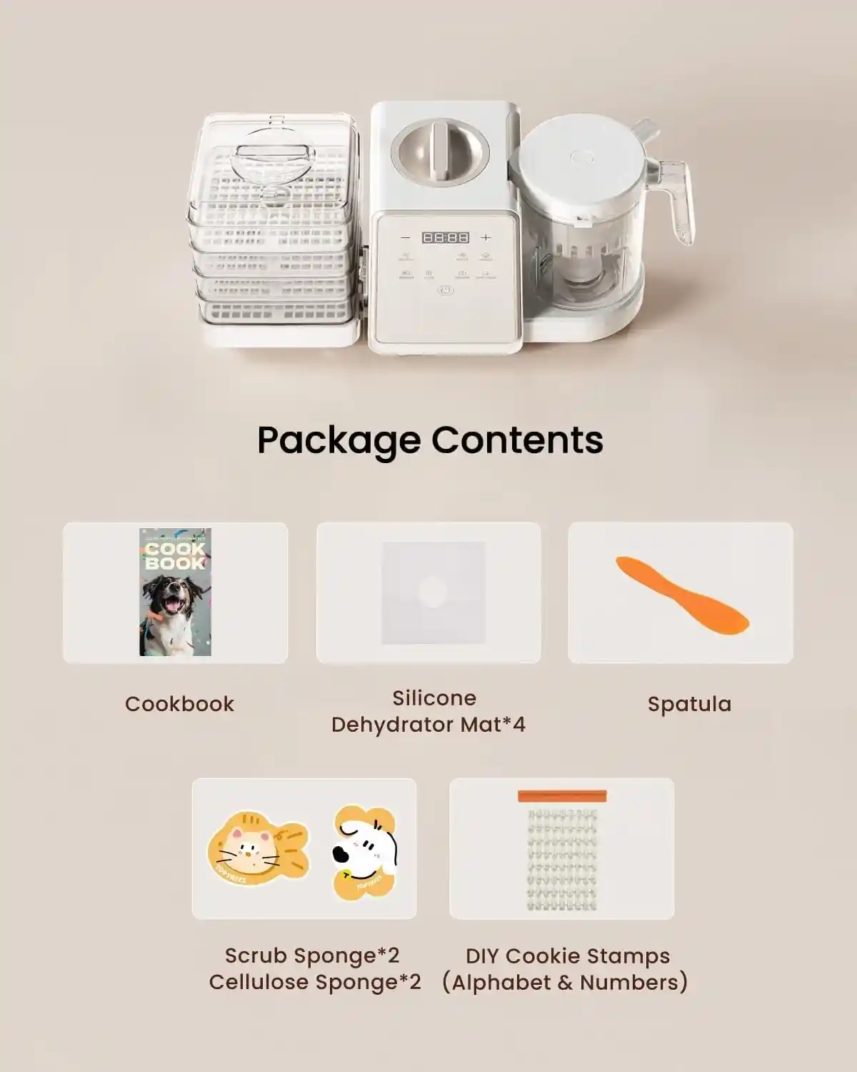 • Creative Recipe Book: This pet recipe book comes with the pet cooking machine and features over 100 creative pet treats. Detailed, step-by-step instructions help pet parents prepare healthy meals with ease and confidence, reducing the risk of mistakes. Simply choose a recipe based on your needs, follow the easy steps, and provide your pet with nutritious food. You can also create your own DIY recipe!