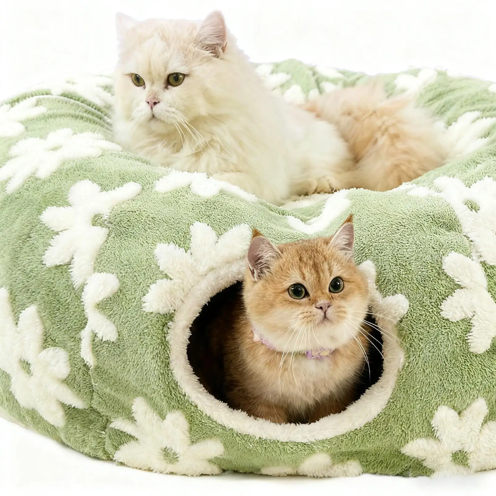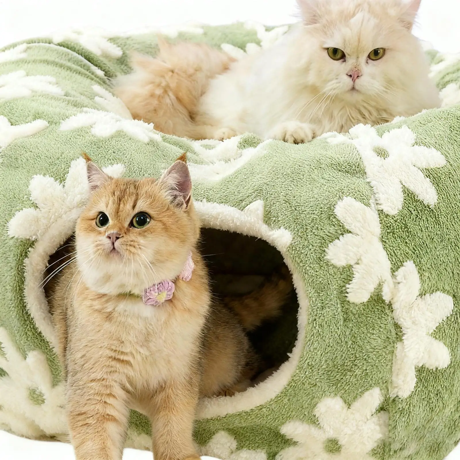 5.Plush Comfort: Designed with soft plush fabric, the cat bed tunnel eliminates loose threads and hard seams, creating a soothing environment where cats can rest or engage in energetic play safely, enhancing their overall well-being at home