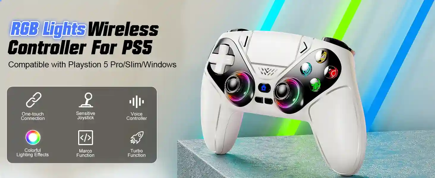 controller for ps5/playstion 5 pro/slim/pc wireless gamepad hall effect trigger rgb turbo vibration programmable button joystick
